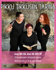 Pikku Tikkusen tarina on monitaiteellinen erilaisiin tapahtumiin räätälöity esitys, jossa Pikku Tikkusen tarina herää henkiin runon, musiikin, tanssin ja kuvataiteen keinoin. Esityksen teemana ovat ulkopuolisuus sekä erilaisuuden hyväksyminen. Ikäsuositus 3-8 -vuotiaat.
