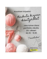 Koukutu kirjaan -käsityöiltojen kevätkausi starttaa ti 20.1.2026 klo 18! Kokoonnumme kevätkaudella joka toinen tiistai parillisilla viikoilla toukokuun loppuun saakka.